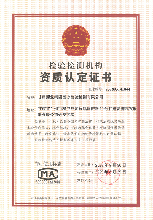 甘肅藥業(yè)集團(tuán)國(guó)方檢驗(yàn)檢測(cè)有限公司(簡(jiǎn)稱“國(guó)方檢測(cè)”)成立于2022年10月18日,是由甘肅藥業(yè)集團(tuán)科技創(chuàng)新研究院有限公司發(fā)起,整合甘肅藥業(yè)系統(tǒng)檢驗(yàn)檢測(cè)資源成立的國(guó)有全資的第三方檢驗(yàn)檢測(cè)公司?,F(xiàn)有中藥材、食品、農(nóng)產(chǎn)品、潔凈室、生活飲用水五個(gè)領(lǐng)域1800余項(xiàng)參數(shù)CMA資質(zhì)。國(guó)方檢測(cè)注冊(cè)資本3100萬,總占地面積2500平方米,安裝氣相-串聯(lián)質(zhì)譜儀(GC-MS)、液相-串聯(lián)質(zhì)譜儀(LC-MS)、電感耦合等離子體質(zhì)譜儀(ICP-MS)、氣相色譜儀(GC)、液相色譜儀(HPLC)等高精尖設(shè)備共計(jì)210臺(tái)(套),配有功能完善的實(shí)驗(yàn)室信息化管理系統(tǒng)。