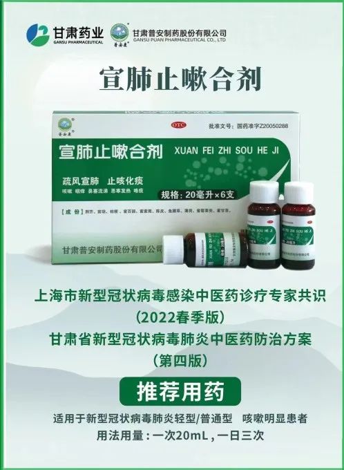 此次捐贈的宣肺止嗽合劑,為甘肅藥業(yè)集團旗下普安制藥股份有限公司生產的主打產品,先后被納入《上海市新型冠狀病毒感染中醫(yī)藥診療專家共識(2022春季版)》、《甘肅省新型冠狀病毒肺炎中醫(yī)藥防治方案(第四版)》推薦用藥,也被甘肅省援疆醫(yī)療隊和青海方艙醫(yī)院等作為重點選用的中成藥之一,適用于新型冠狀病毒肺炎輕型、普通型和咳嗽明顯患者。經實效性研究顯示,宣肺止嗽合劑治療新冠肺炎咳嗽癥狀緩解率達98.3%,7天咳嗽癥狀消失率為72.4% 。