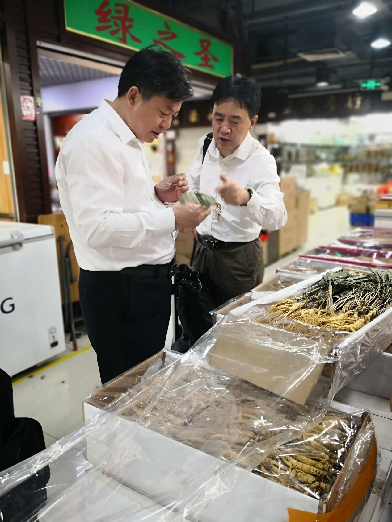 王賢斌邱國玉一行還赴廣東清平中藥材市場、廣州采芝林藥業(yè)有限公司,對名貴中藥材和傳統(tǒng)中藥創(chuàng)新中心進行了實地考察。